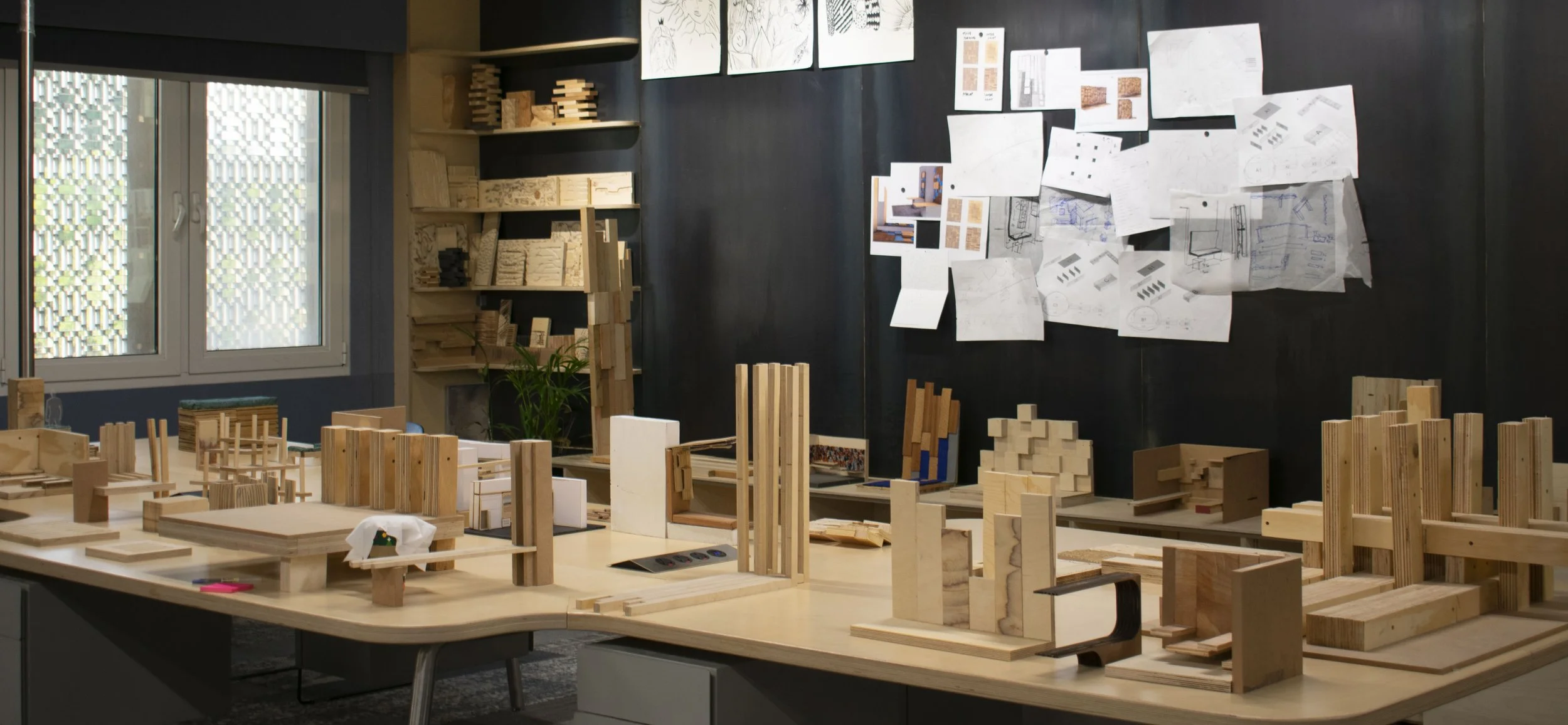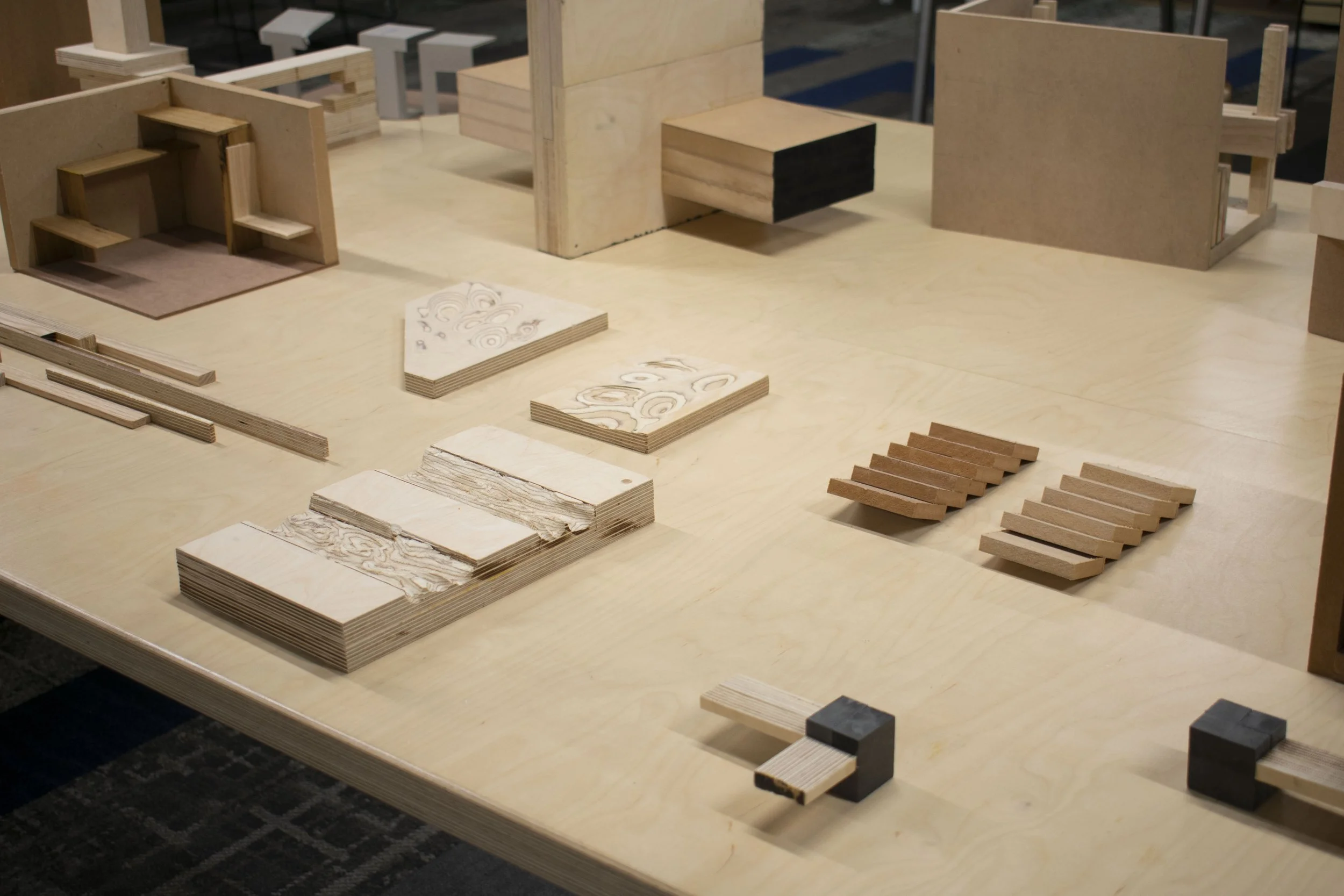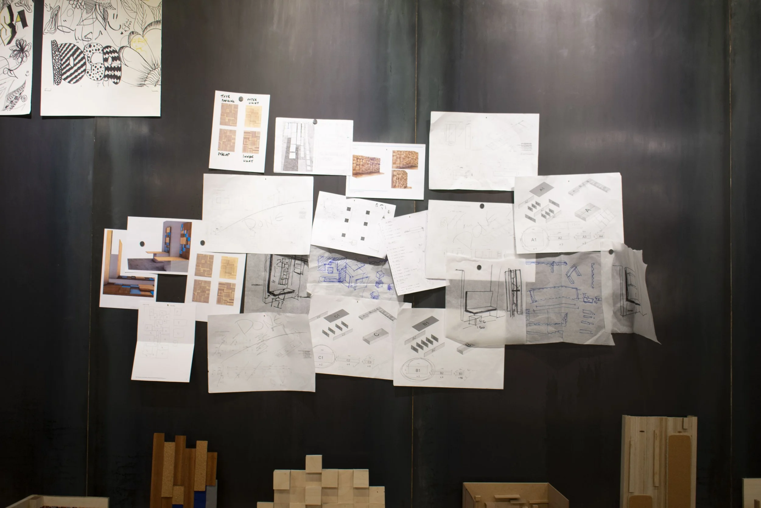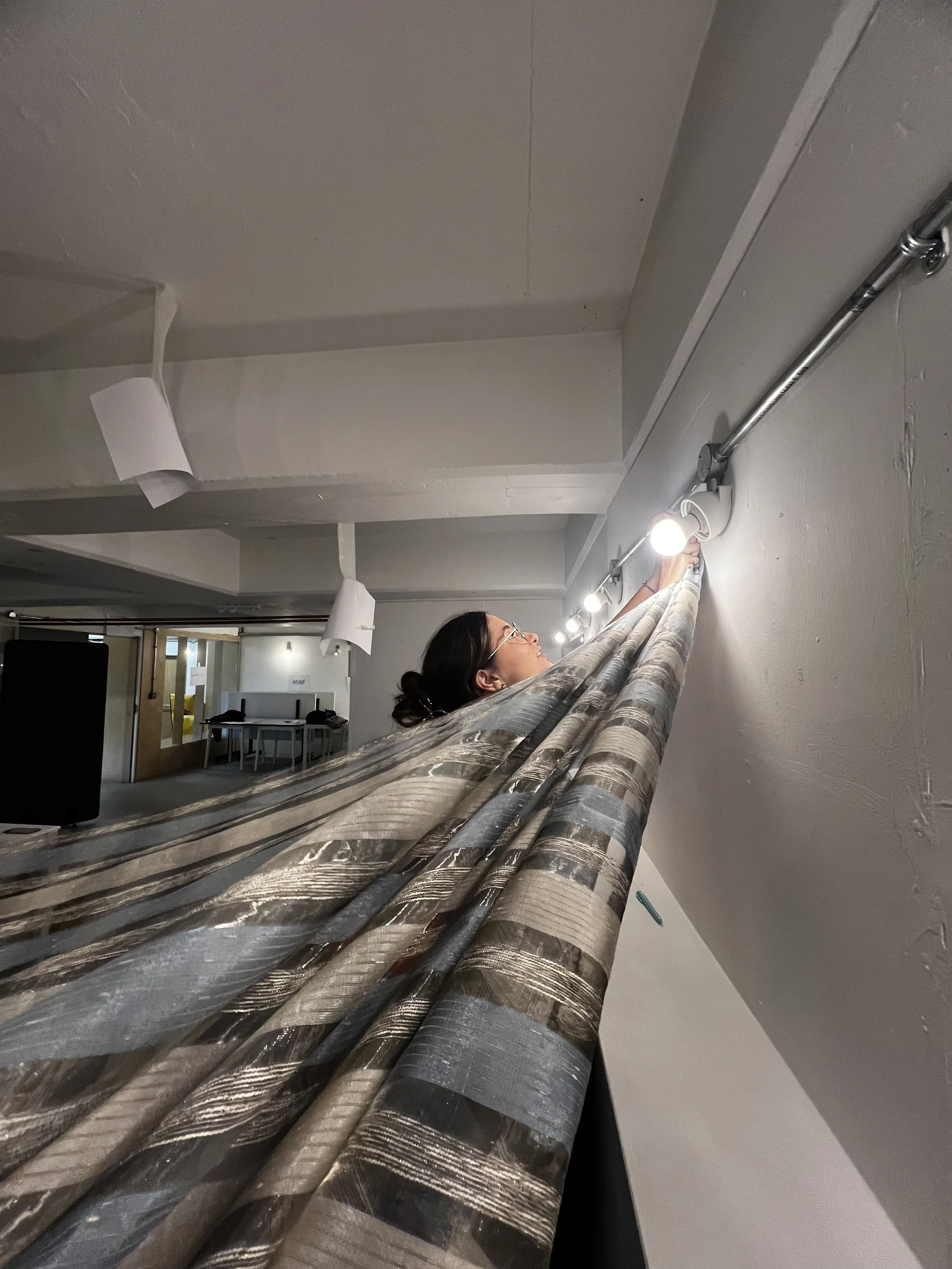Process photographs documenting the collective making of a CAAD student lounge designed for both work and leisure.