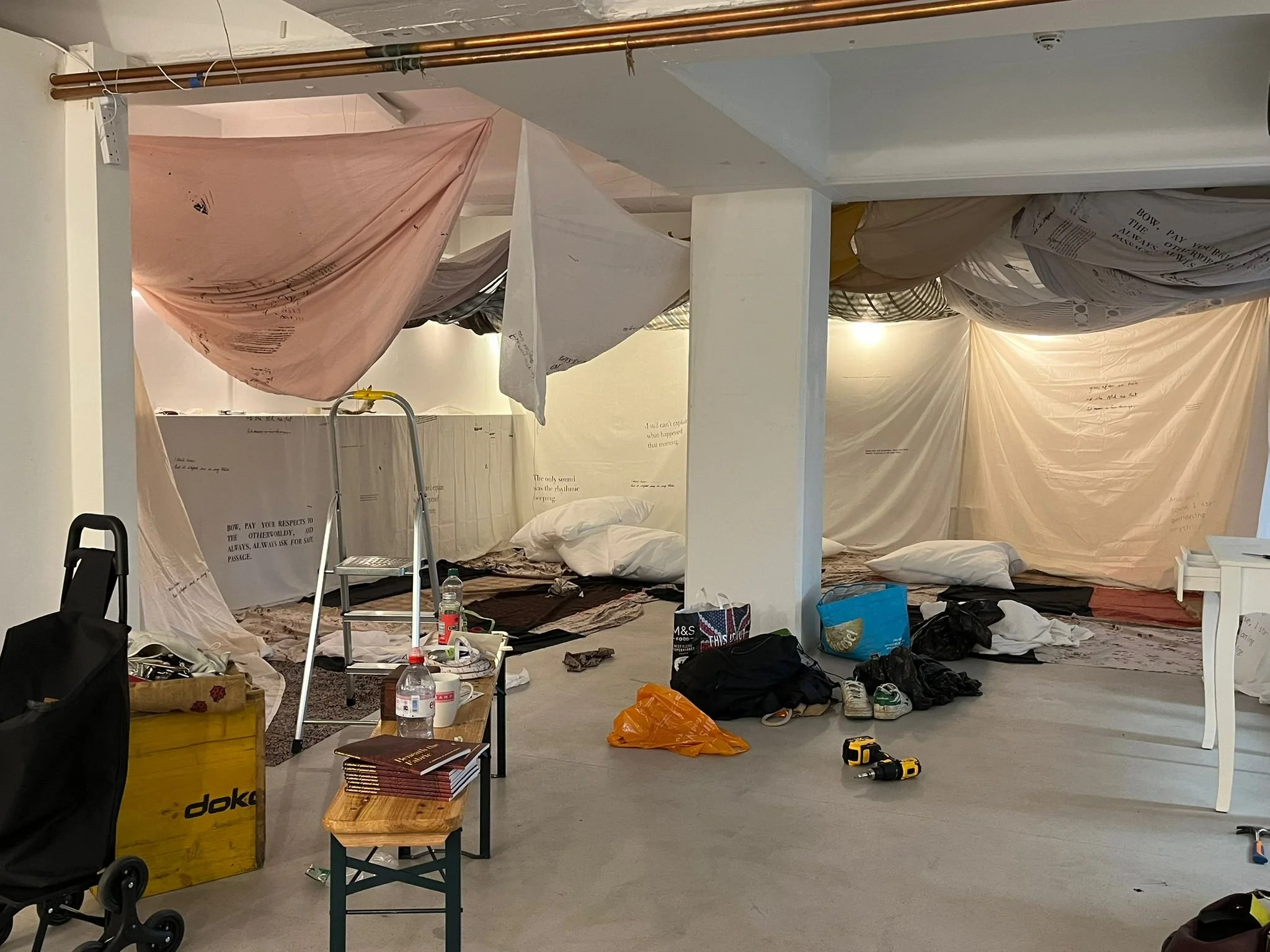 Progress photographs from the making of an immersive exhibition by MA Interior and Spatial Design and MA Illustration.
